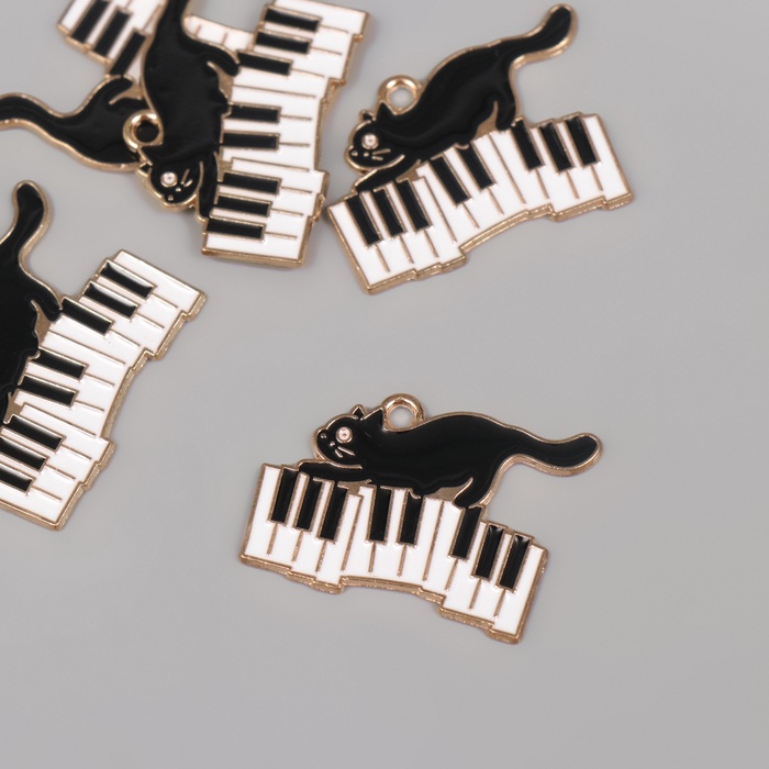 Декор для творчества металл, эмаль «Чёрный котик и пианино», 2.9×2 см
