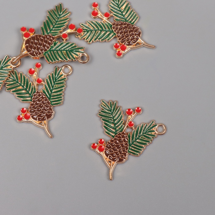 Декор для творчества металл, эмаль «Сосновая ветка», 3.2×2.6 см