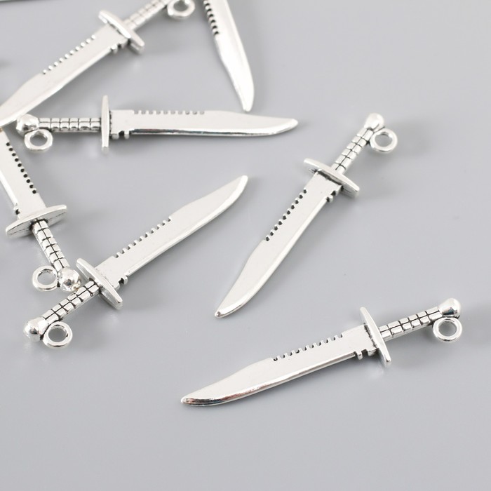 Металлический элемент, декоративная подвеска «Арт Узор. Меч короля Артура», серебро, 4.3×1 см