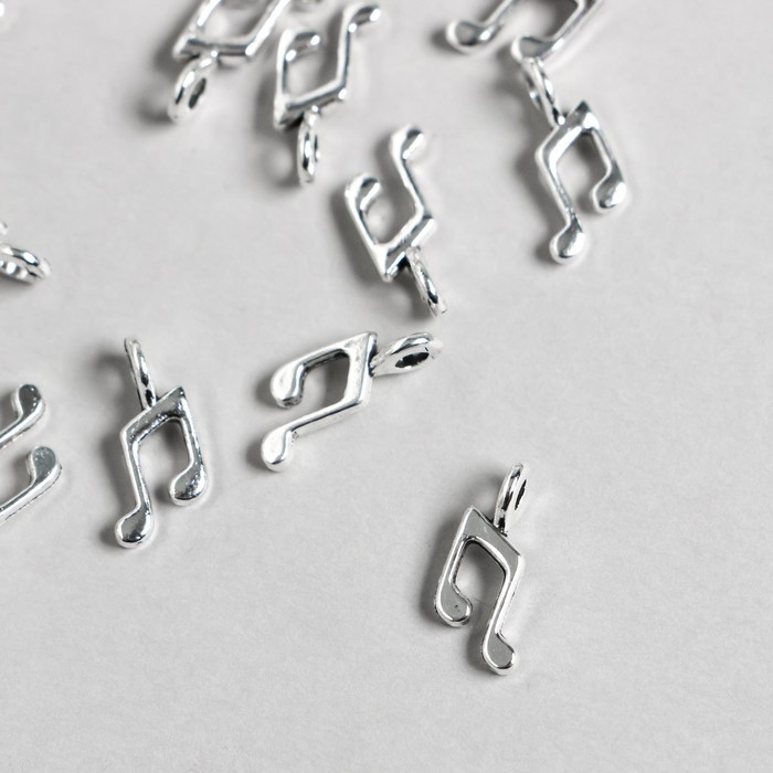 Металлический элемент, декоративная подвеска «Арт Узор. Музыкальная нота », серебро, 1.3×0.7 см
