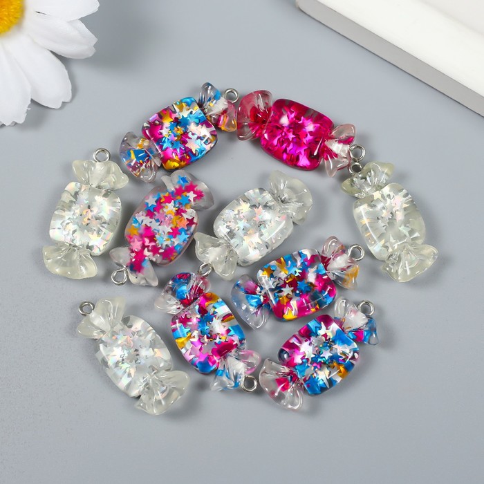 Декор для творчества пластик «Звёздная конфетка с петелькой», 0.4×1.3×2.8 см, МИКС