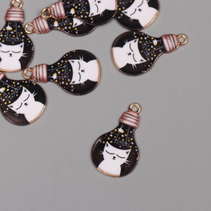 Декор для творчества металл, эмаль «Белый кот в лампочке», 2.8×1.6 см