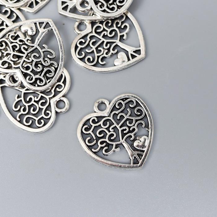Металлический элемент, декоративная подвеска «Арт Узор. Деревце в сердце», серебро, 1.8×1.7 см