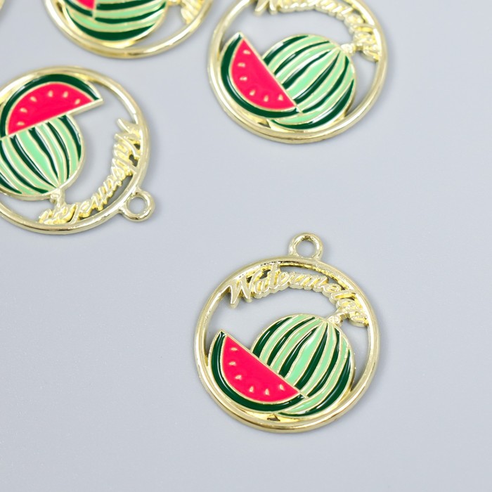 Декор для творчества металл, эмаль «Арбуз в круге», золото, 2.1×2.5 см