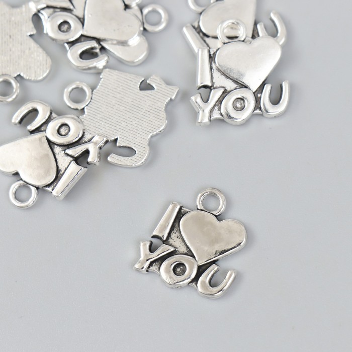 Металлический элемент, декоративная подвеска «Арт Узор. Сердечко. Я люблю тебя», серебро, 1.5×1.6 см
