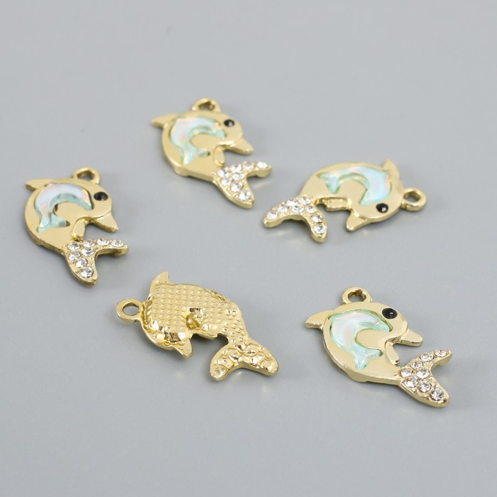 Декор для творчества металл, стразы «Двойной дельфин», голубой, 2.2×2.1 см