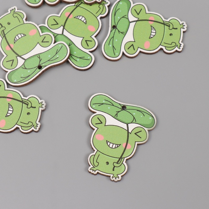 Декор для творчества дерево «Лягушка под листиком», набор 6 шт., 4×3.5×0.3 см