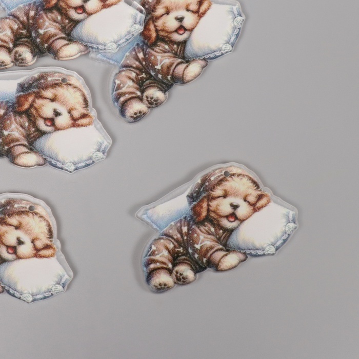 Декор для творчества акрил «Щеночек в пижамке сладко спит на подушке», 2.5×4.5×0.2 см