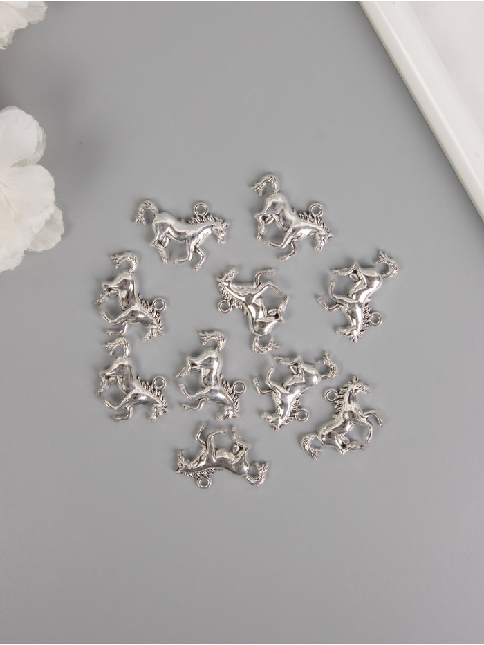 Набор декоративных элементов для творчества «Скачущий конь», металл под серебро, 10 шт., 2.2×2.9×0.4 см
