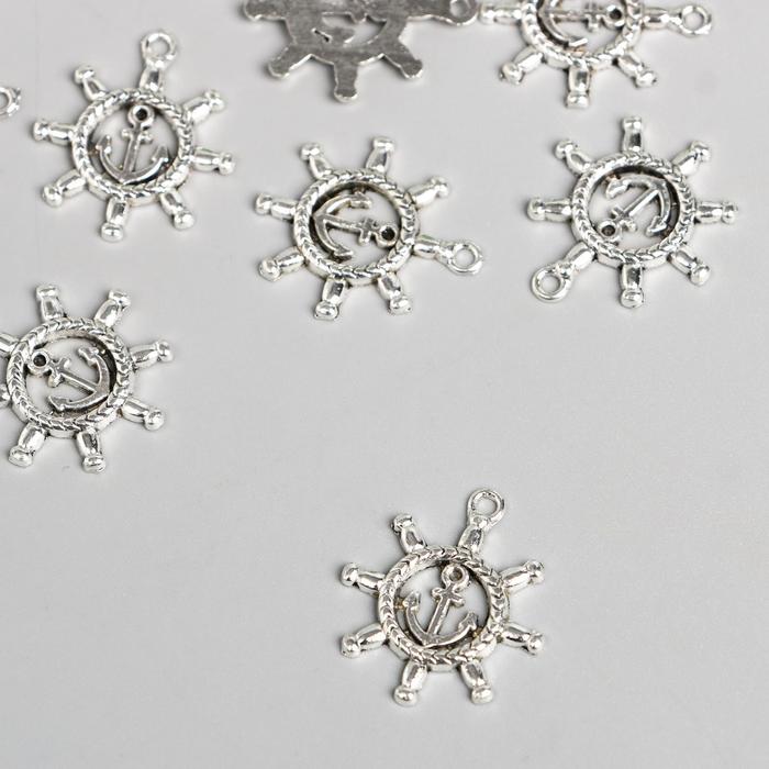 Металлический элемент, декоративная подвеска «Арт Узор. Штурвал с якорем», 2.3×2.3 см