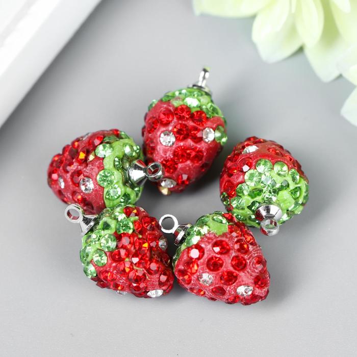 Декор для творчества пластик "Клубничка с петелькой" набор 5 шт 1х1,4 см