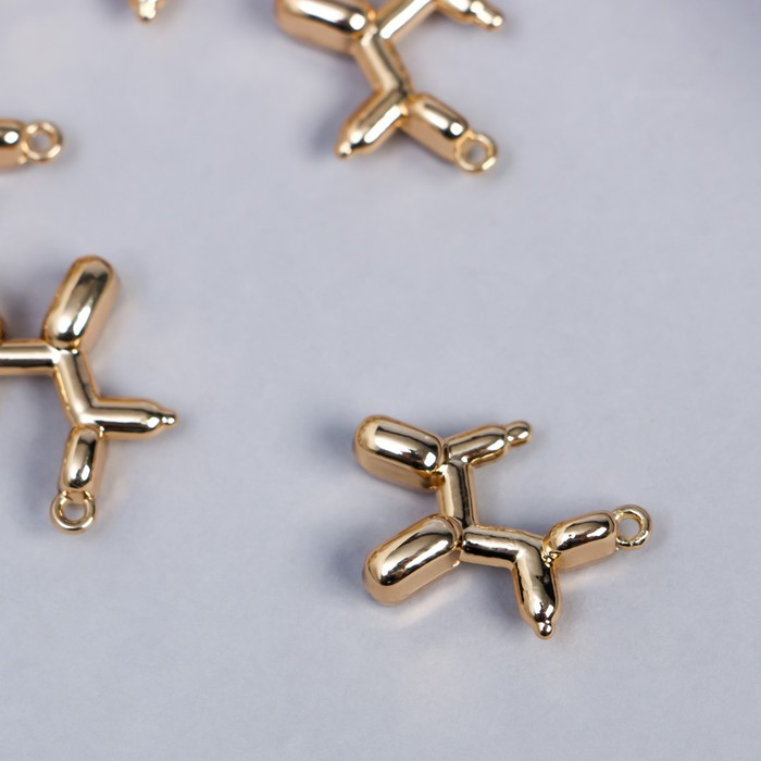 Металлический элемент, декоративная подвеска «Арт Узор. Надувной шарик: собака», золото, 1.8×2 см