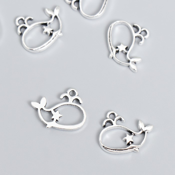 Декор для творчества металл «Кит со звёздочкой», под серебро, набор 12 шт., 1.5×1.9 см