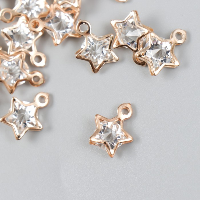 Декор для творчества металл "Звёздочка" золото, кристалл 0,6х1,1х1,1 см