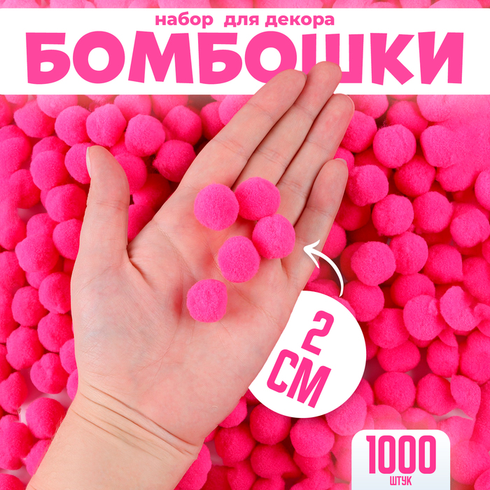 Помпоны для рукоделия «Бомбошки для творчества», набор 1000 шт., размер 1 шт. — 2 см, цвет розовый
