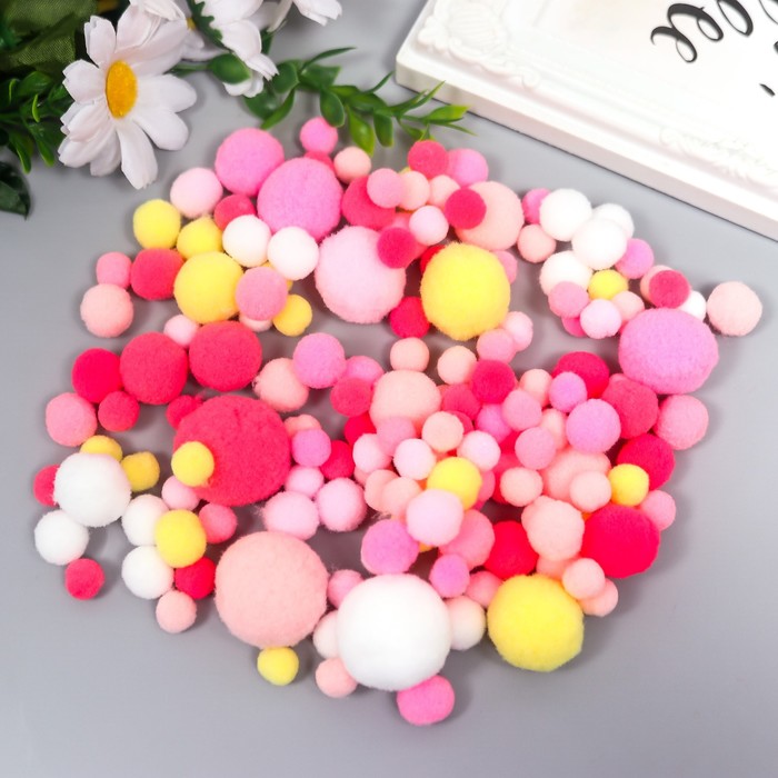 Декор для творчества «Помпончики. Розовое облако», d=1-3 см, набор 135 шт.