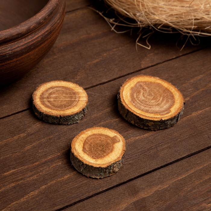Набор спилов дуба 3 шт., слэбы для декора, 3×5×1 см
