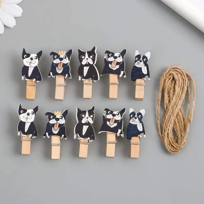 Прищепки декоративные «Монстирики» набор 10 шт., с верёвкой для подвеса, 1,5 × 12 × 14 см