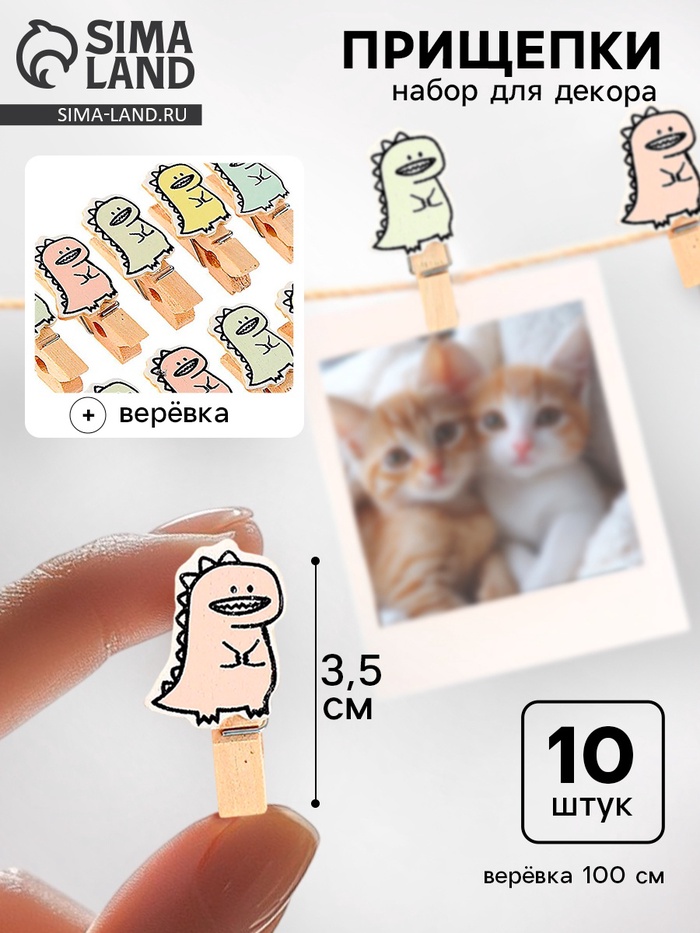 Прищепки декоративные с верёвкой для подвеса «Дракоши» набор 10 шт., 1,5 × 12 × 14 см
