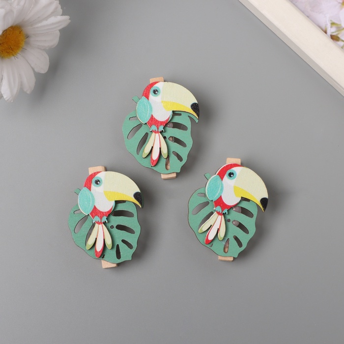 Декор для творчества дерево «Прищепка. Спящий тукан на листе», набор 3 шт., 1.3×3.3×4.5 см