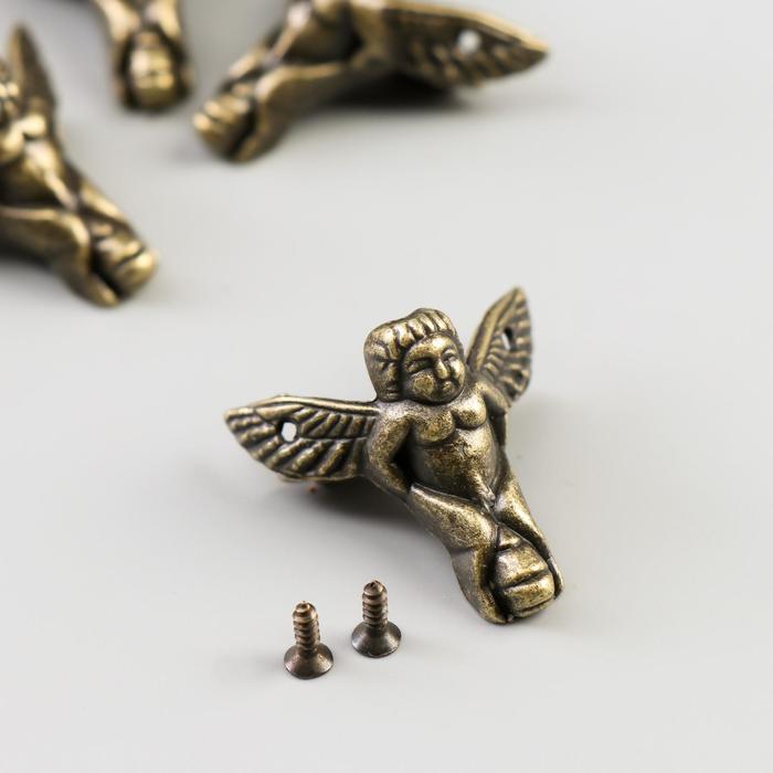 Уголок (ножка) для шкатулки металл "Ангел" набор 4 шт бронза 2,3х2,6х1 см