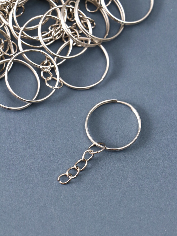 Основа для брелока кольцо плоское металл с цепочкой, серебро, 3.2×3.2 см, набор 12 шт.
