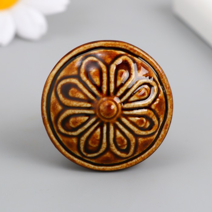 Ручка для шкатулки керамика, металл "Цветок" кофе 3,9х3,9х3,1 см