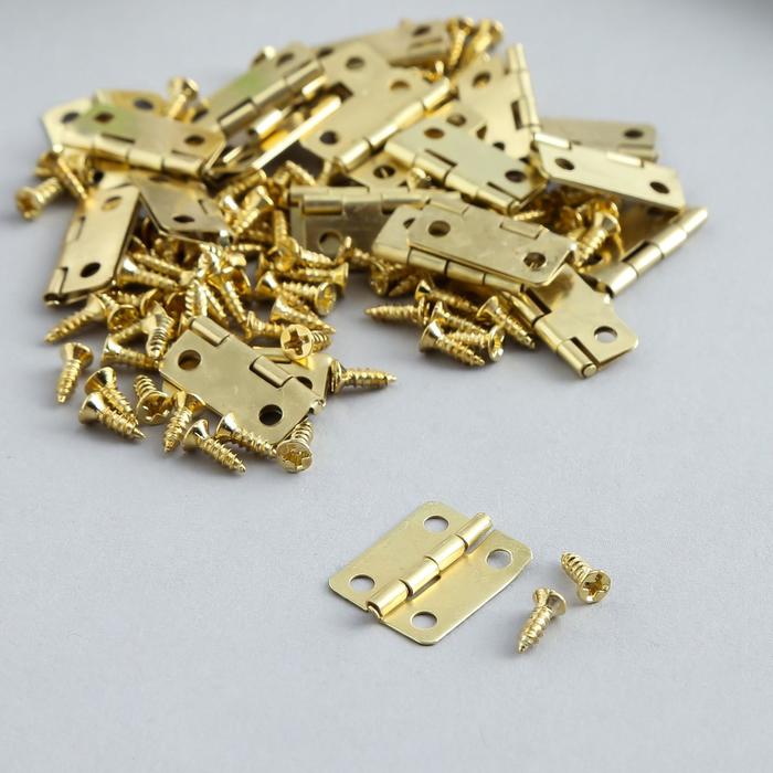 Петля для шкатулки металл с закругленными углами золото + саморезы набор 25 шт 1,6х1,3 см