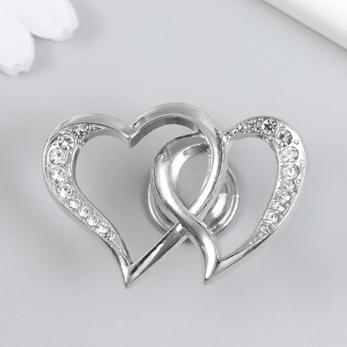 Фурнитура для шкатулки, ручка «Два сердца», металл, стразы, серебро 3.8×5.4×2.4 см