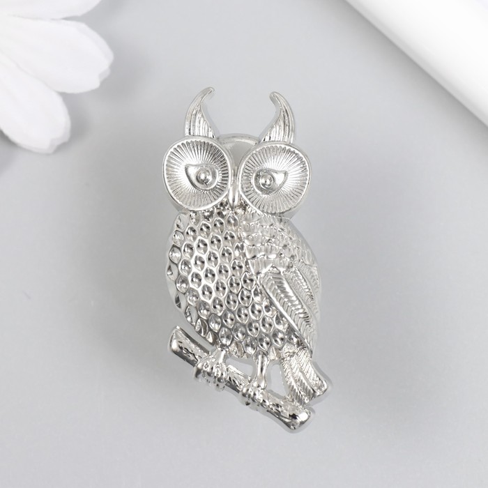 Ручка для шкатулки металл "Филин на ветке" серебро 5,2х2,2 см