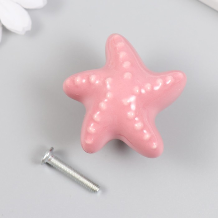 Ручка для шкатулки керамика, металл "Моская звезда" розовая 4,6х4,6х3,3 см