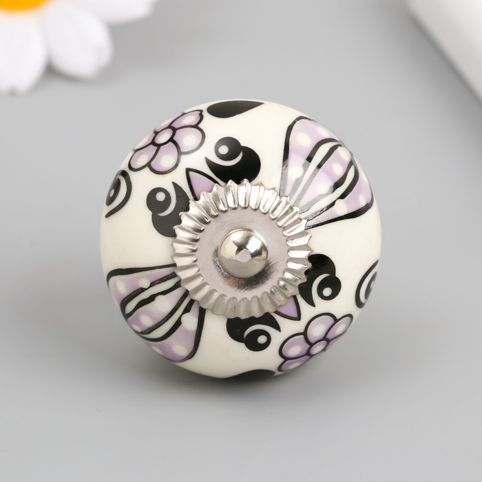 Ручка для шкатулки керамика, металл "Сиреневые цветы" 4,1х4,1х6 см