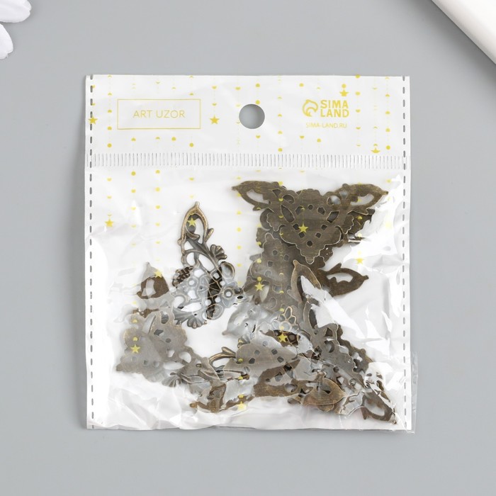 Уголок металл "Узорчатый" бронза набор 4 шт 4,5х4,5 см