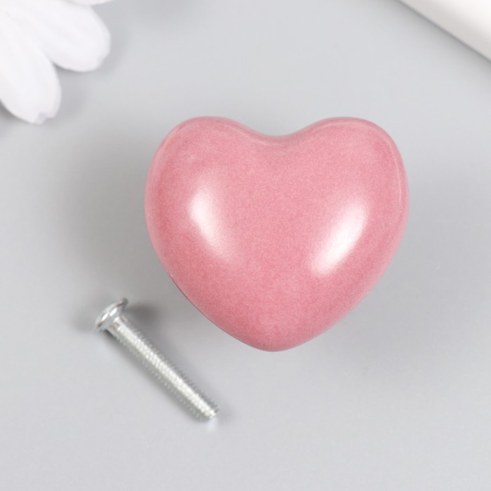 Фурнитура для шкатулки, ручка «Сердечко», керамика, металл, розовая 3.8×3.8×3 см
