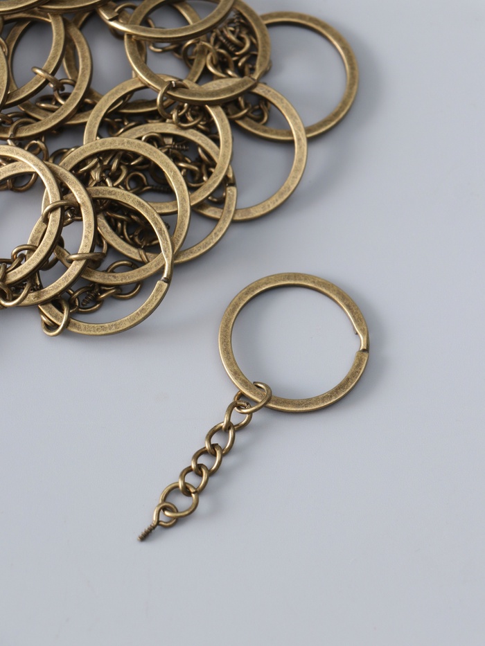 Основа для брелока кольцо металл с цепочкой и винтом латунь 3х6,4 см