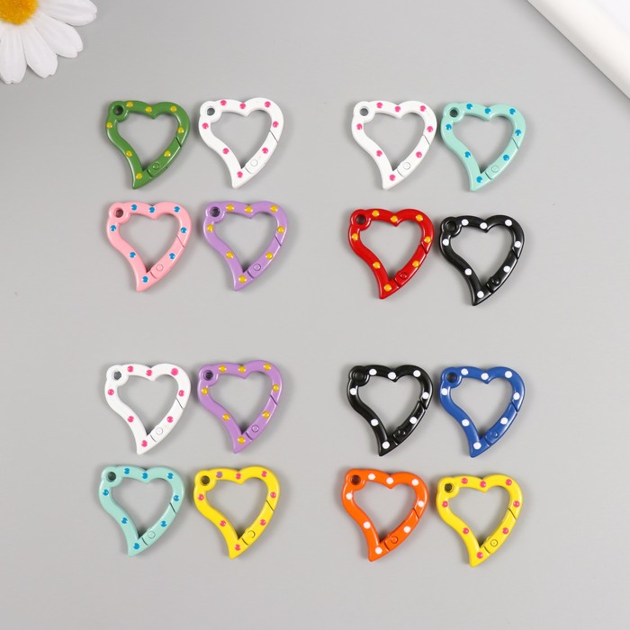 Карабин металл "Сердце в горошек" МИКС 3,2х2,8 см