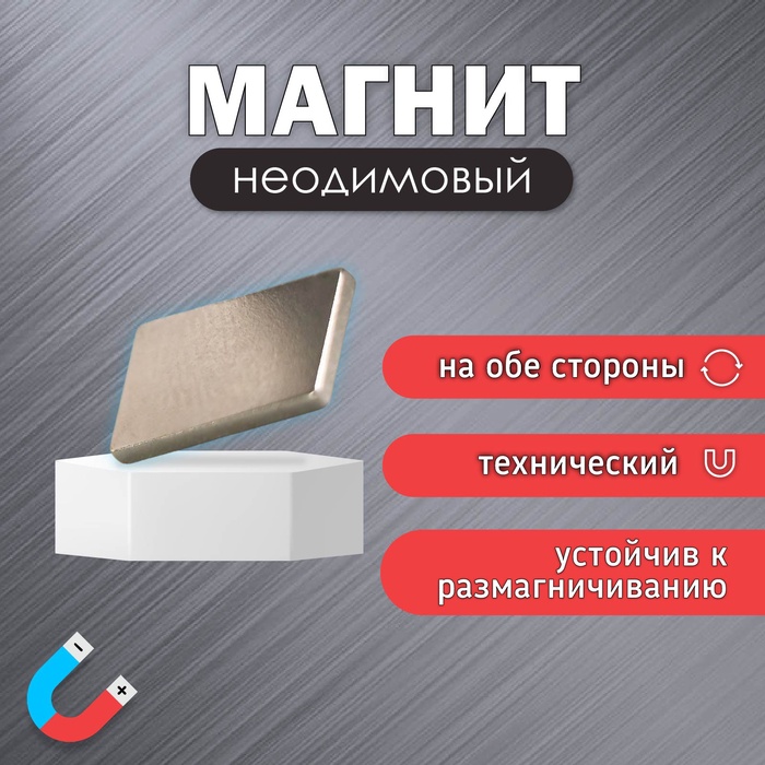 Магнит технический серебристый прямоугольный 10х1,5х6 мм