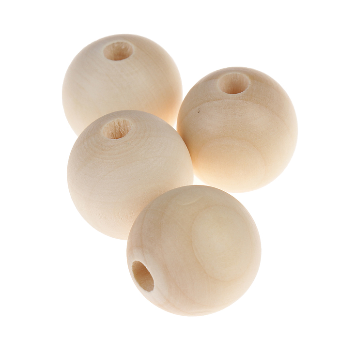 Бусины деревянные d=25 мм, набор 4 шт., без покрытия