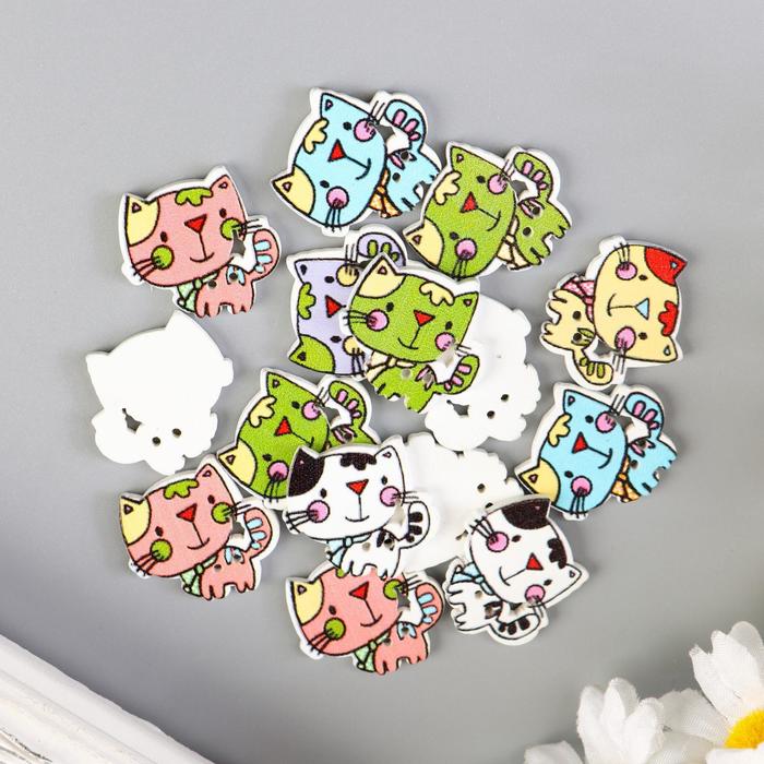 Набор пуговиц декоративных дерево «Милый котёнок», набор 15 шт., 2×2.1 см, МИКС