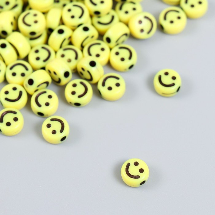 Бусины для творчества пластик «Жёлтые кружочки со смайлами», набор 15 г, 0.4×0.7×0.7 см
