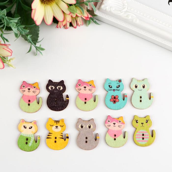 Пуговицы дерево для творчества 2 прокола «Котята», набор 10 шт., 3×2.1×0.2 см
