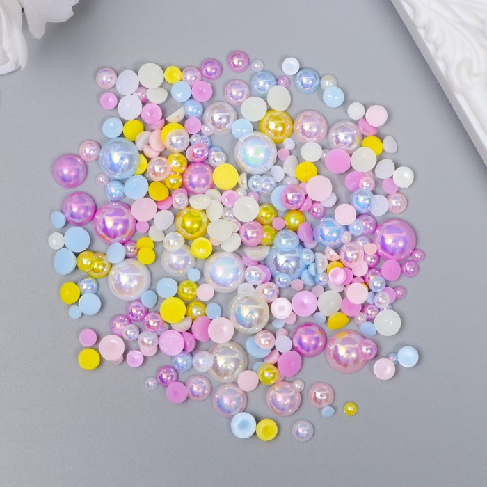 Декор для творчества пластик «Половинки бусин. Макарун перламутр», d=3-10 мм, набор 10 г