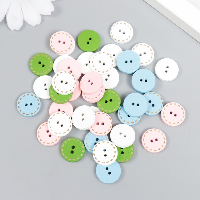 Пуговицы дерево для творчества 2 прокола «Стежки», набор 40 шт., 1.5×1.5 см, МИКС