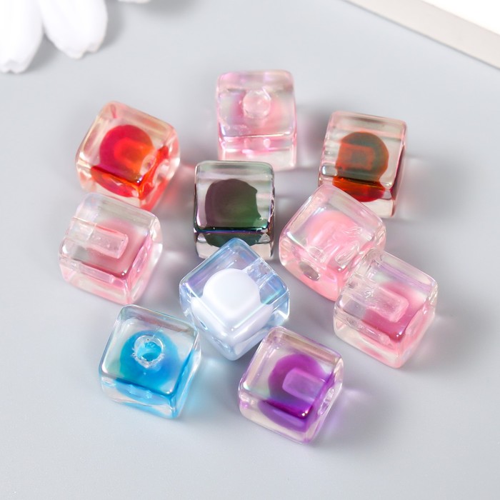 Бусина акрил с несквозным отверстием «Кубик - внутри», 1.2×1.2×1.2 см, МИКС