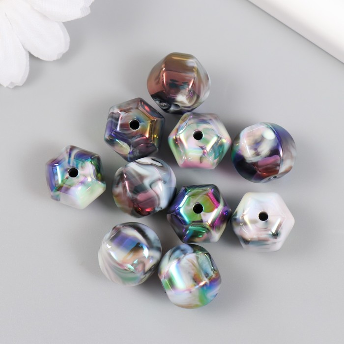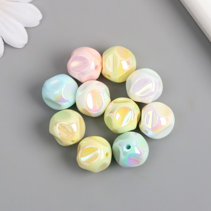 Бусина для творчества пластик «Мятый шарик», перламутр нежных цветов, 1.5×1.5×1.5 см, МИКС