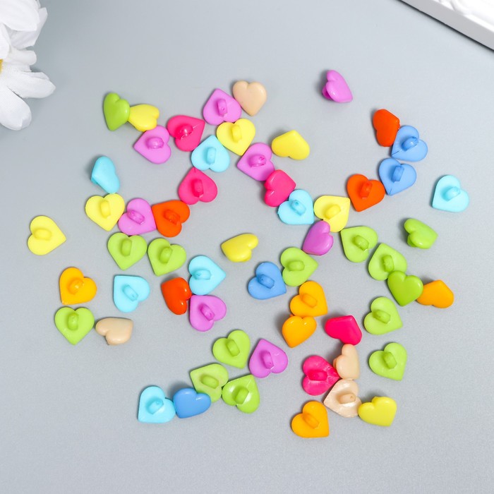 Декоративные пуговицы на ножке набор 60 шт. «Арт Узор. Цветные сердечки», пластик, 1.2×1.2 см