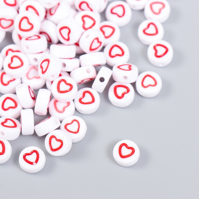 Набор бусин для рукоделия и плетения «Арт Узор. Красное сердце с белой серединкой», 20 г, пластик, 0.7×0.7×0.4 см
