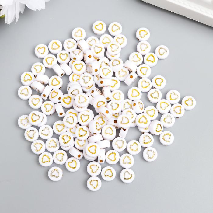 Набор бусин для рукоделия и плетения «Арт Узор. Золотое сердечко в круге», 20 г, пластик, белые, 0.3×0.7×0.7 см