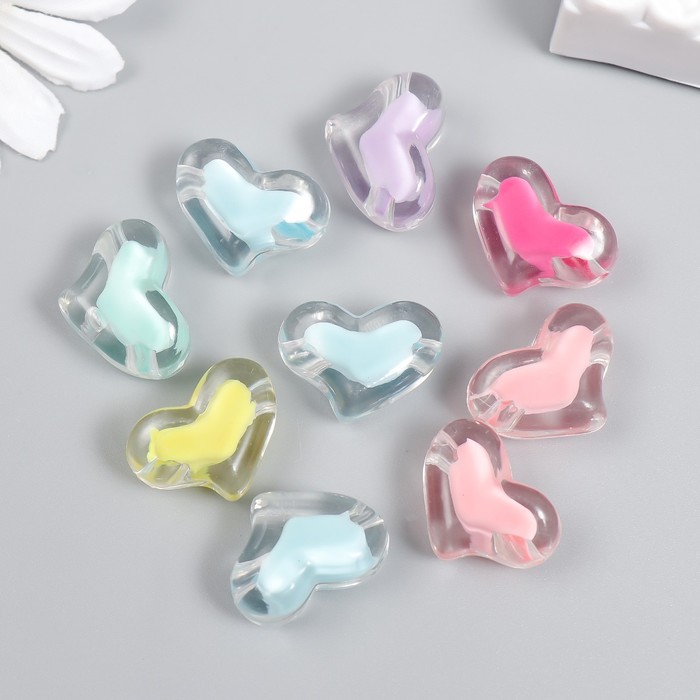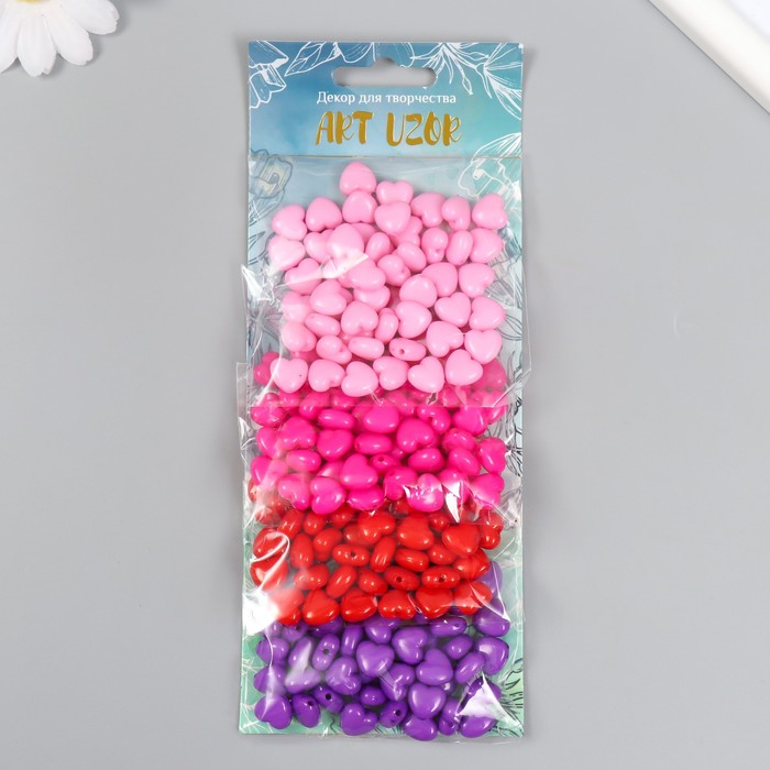 Набор бусин для рукоделия и плетения «Арт Узор. Сердца - внутренний цвет ассорти», 20 г, пластик, 1.5×2.1 см