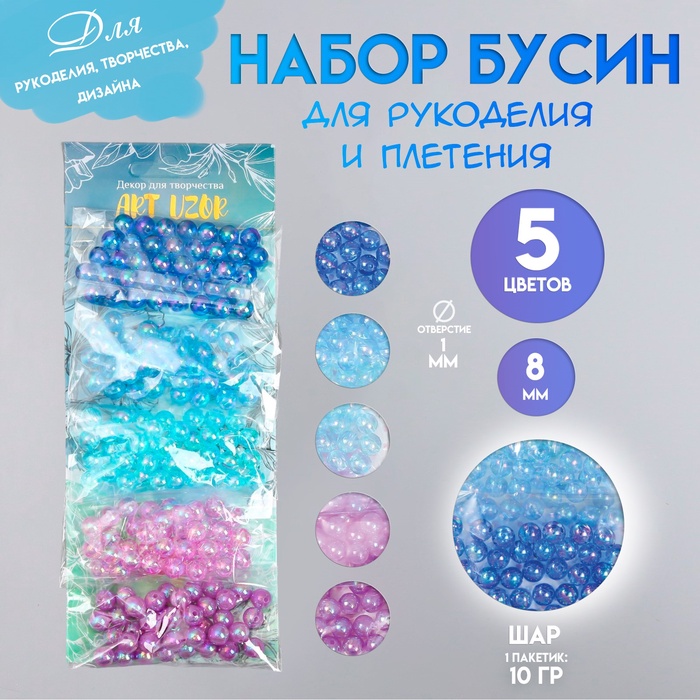 Набор бусин для рукоделия и плетения «Арт Узор. Перламутр. Ночное небо», пластик, 5 цветов × 10 г, d=0.8 см